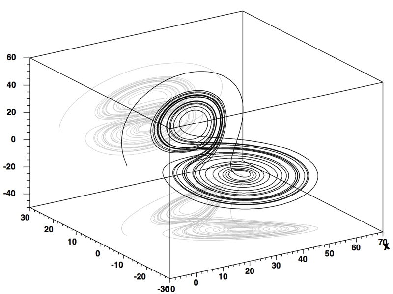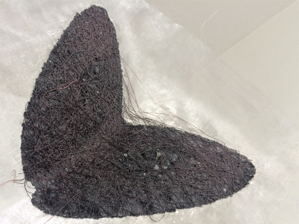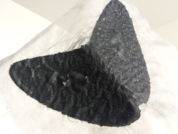 broderie représentant l’attracteur étrange de Lorenz, évocation de l’effet papillon